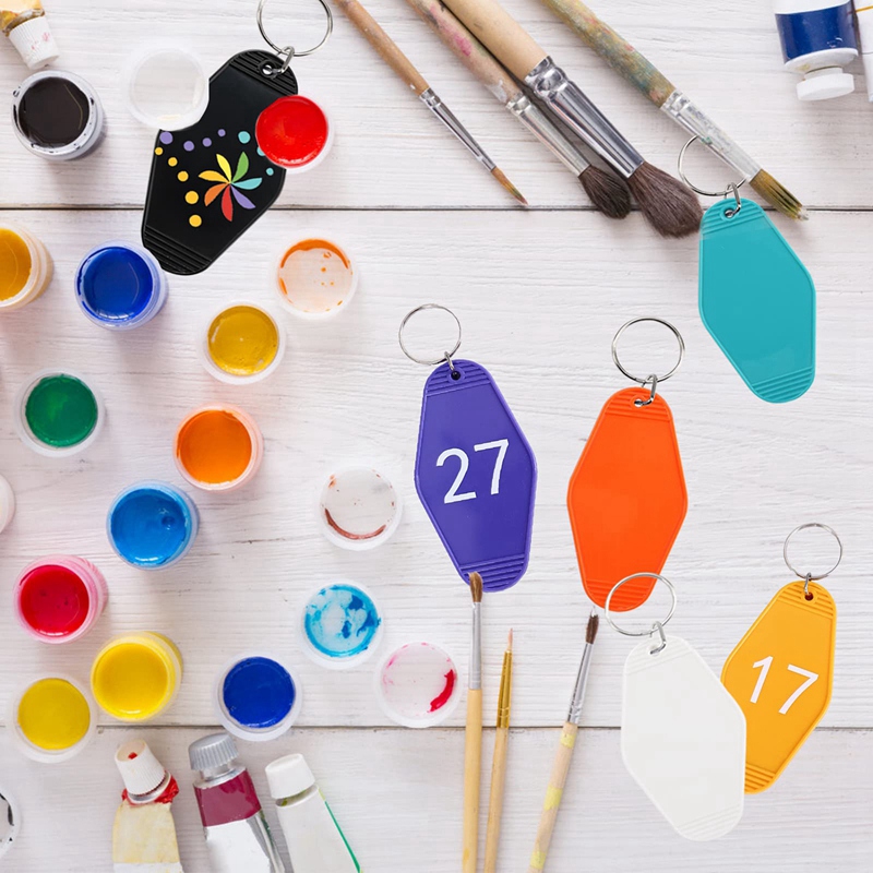 Sublimation Keychain Blank - Made from vintage plastic, this key tag is lightweight, sleek and durable, the diamond-shaped design is designed to bring back the nostalgia of old motels/hotels; double jump metal rings keep keys safe; add a of color with this Add a vintage touch to your keys with a 10-color retro style motel key ring.