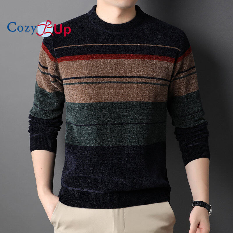 Cozy Up Fashion Striped Pullovers Knitted Sweater Men Clothing Thick Winter Warm Sweaters Mens Clothes Christmas Sweatshirts