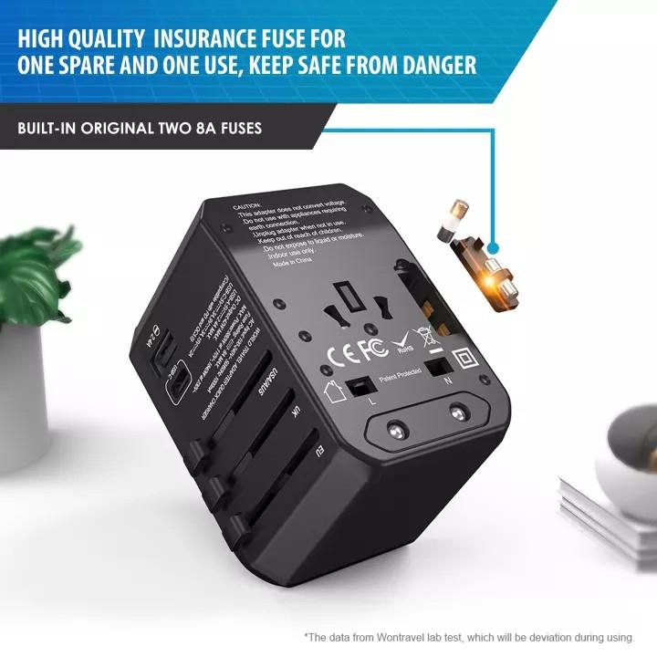 AIRDROPTECH 45W PD Type-C QC3.0 Port Universal Travel Adapter (Black)