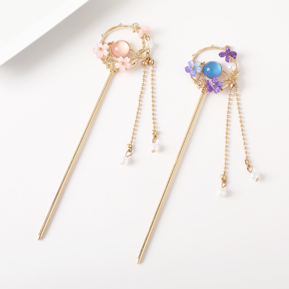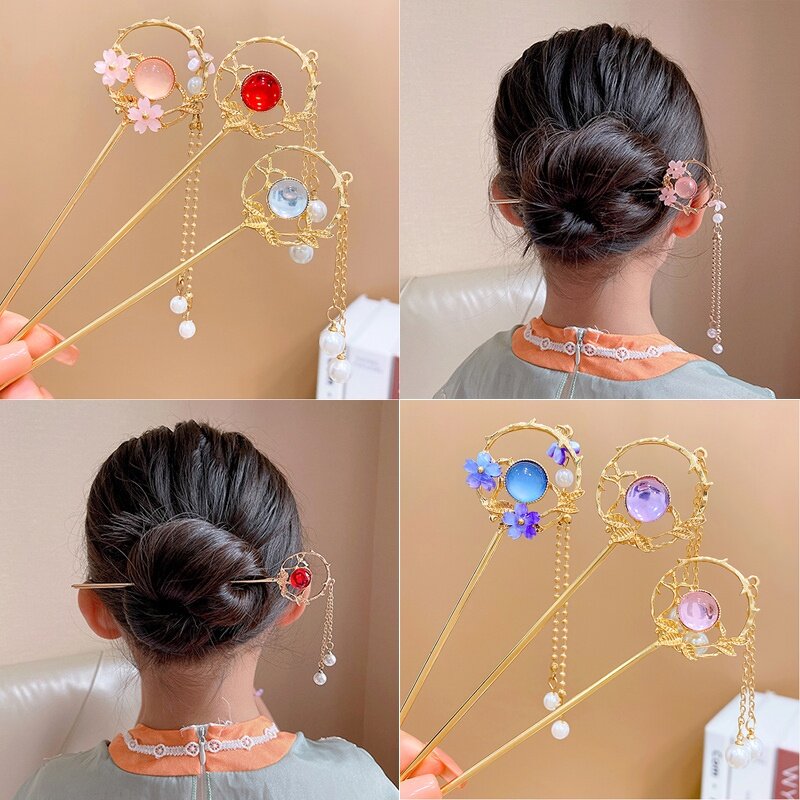 1pc Chinese Retro Fashion Hair Clip Elegant Flower Crystal Pearl Daisy Tassel Alloy Butterfly Hairpin Hair Accessories