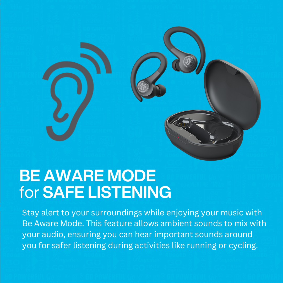 Power through your hardest or easiest workout. With 32+ hours of total playtime and our smallest sport fit ever, the GO Air Sport are mighty (and fun). Auto connect to your device to walk, run, HIIT or talk on-the-GO.