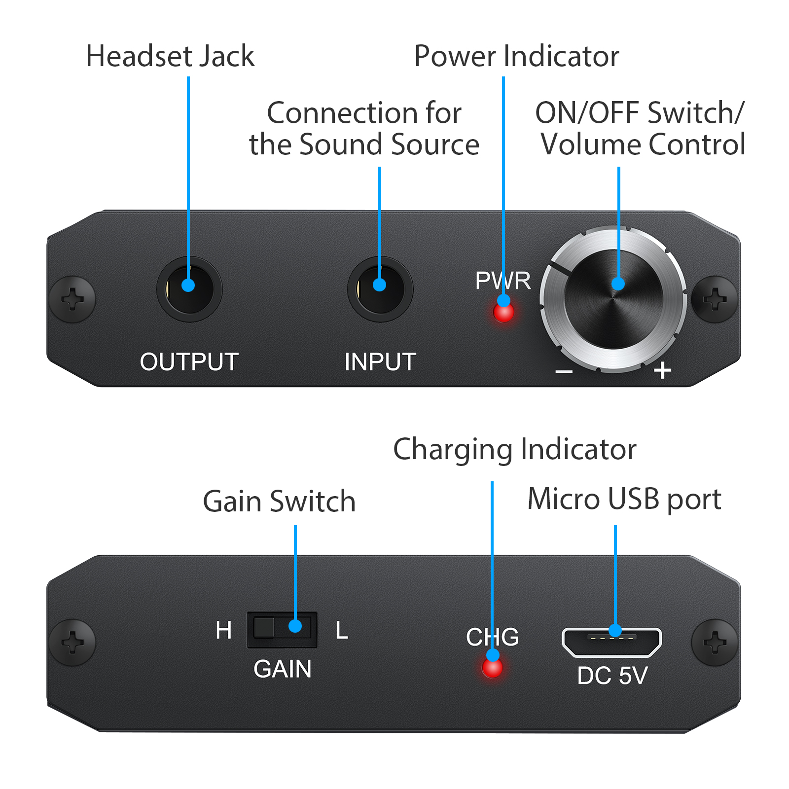 - 3.Two-stage gain switch enhances the signal input into the amp circuit for optimal performance of the headphones