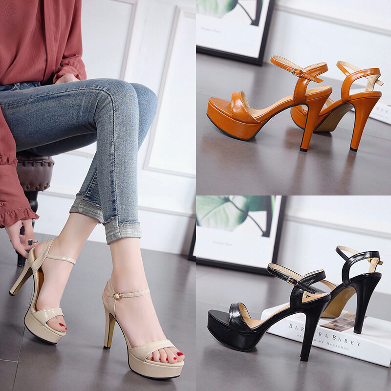 2019 New Korean style fresh stiletto heel sandals open toe buckle high heels women's summer platform all-match women's shoes