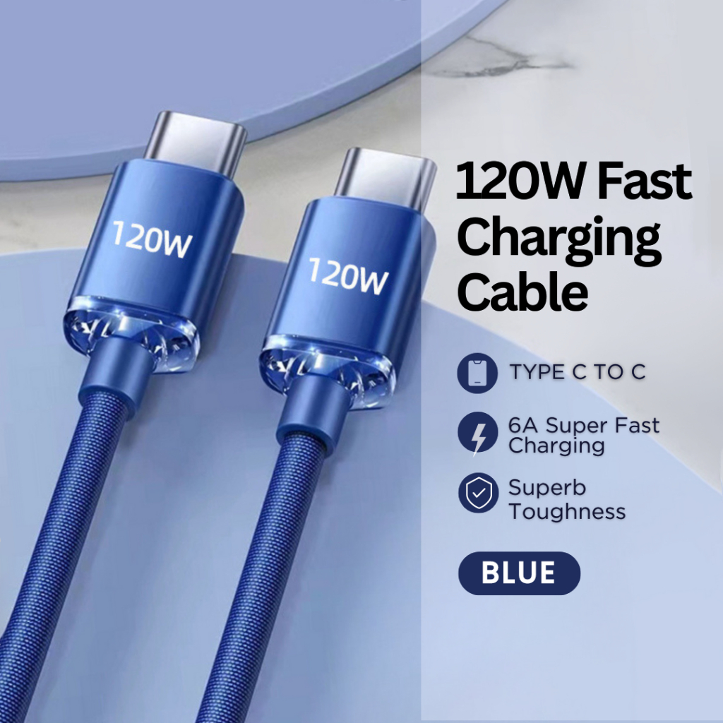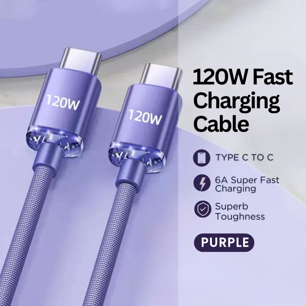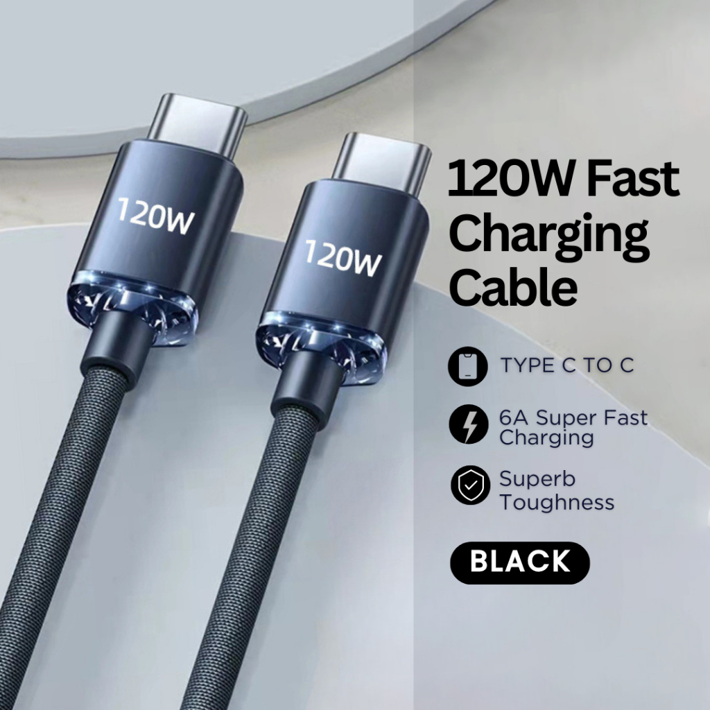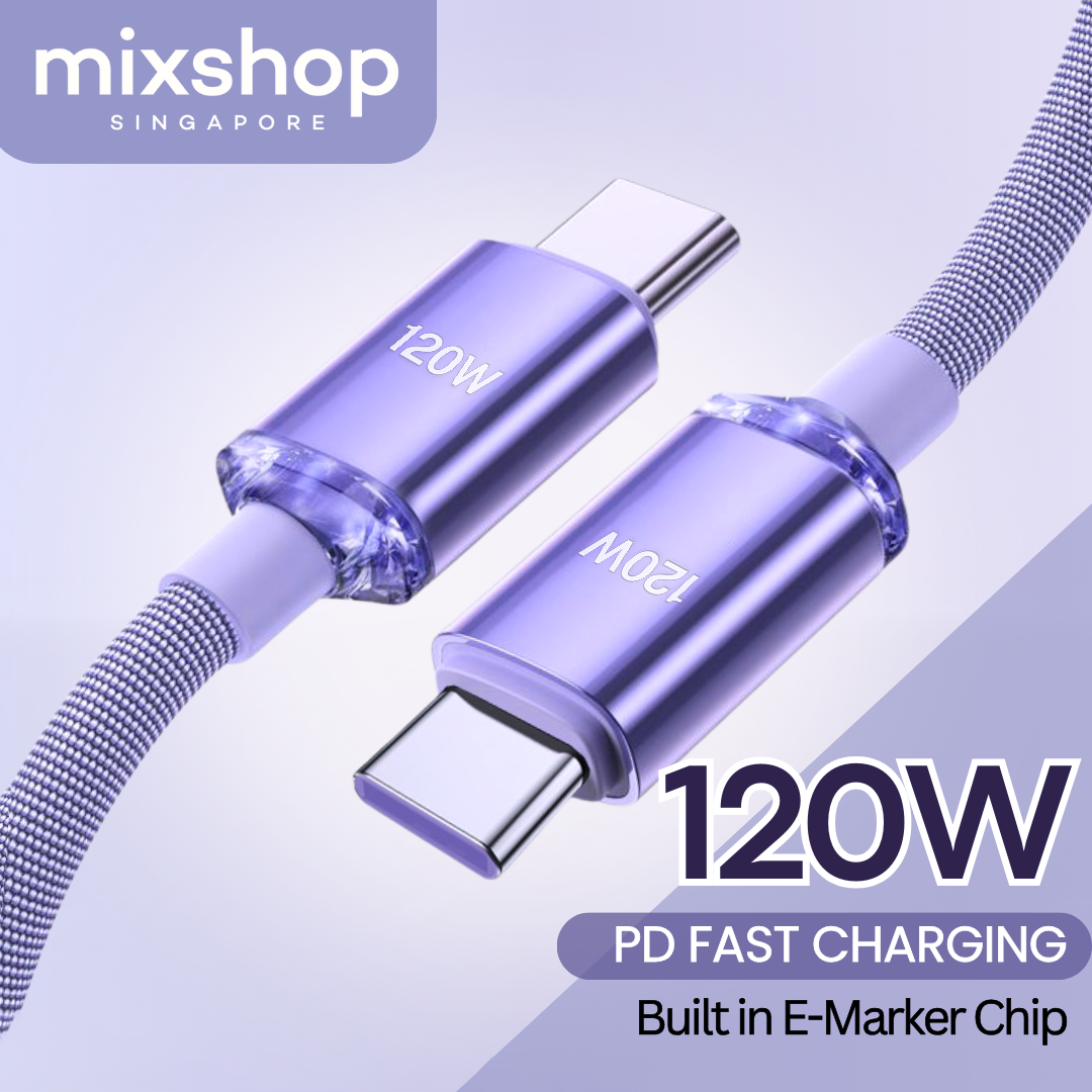 mixshop 120W PD Super Fast Charging Cable,Type C Cable, 1m/1.5m/2m [SG READY STOCK]