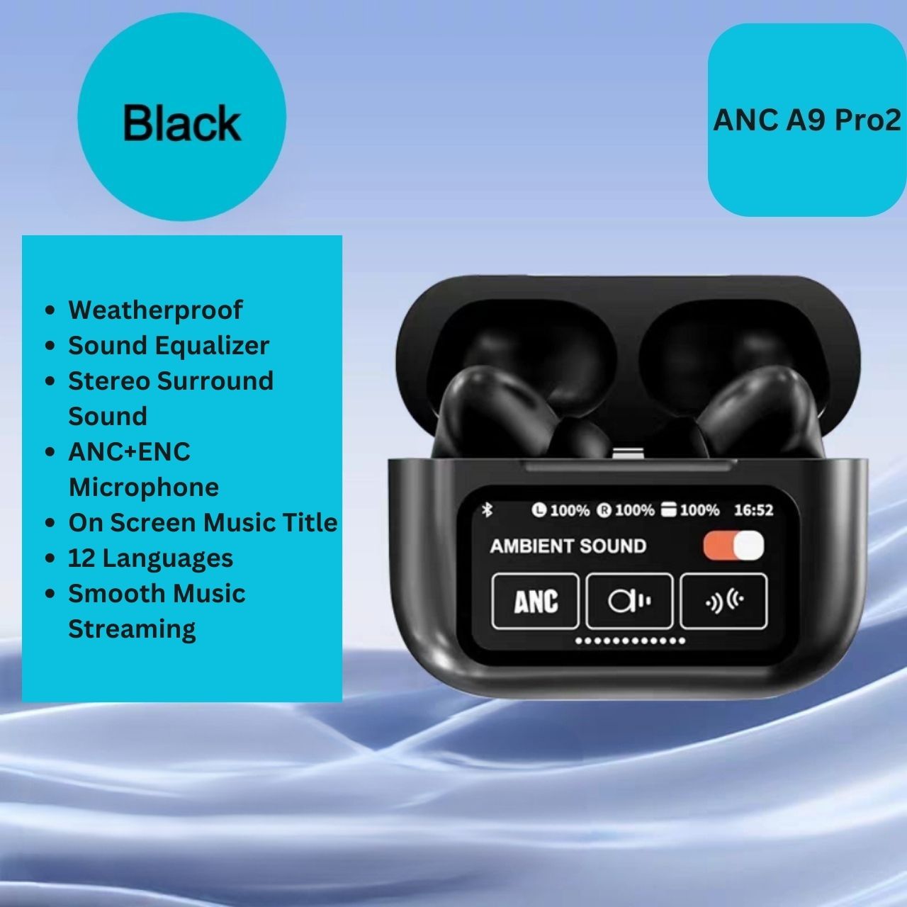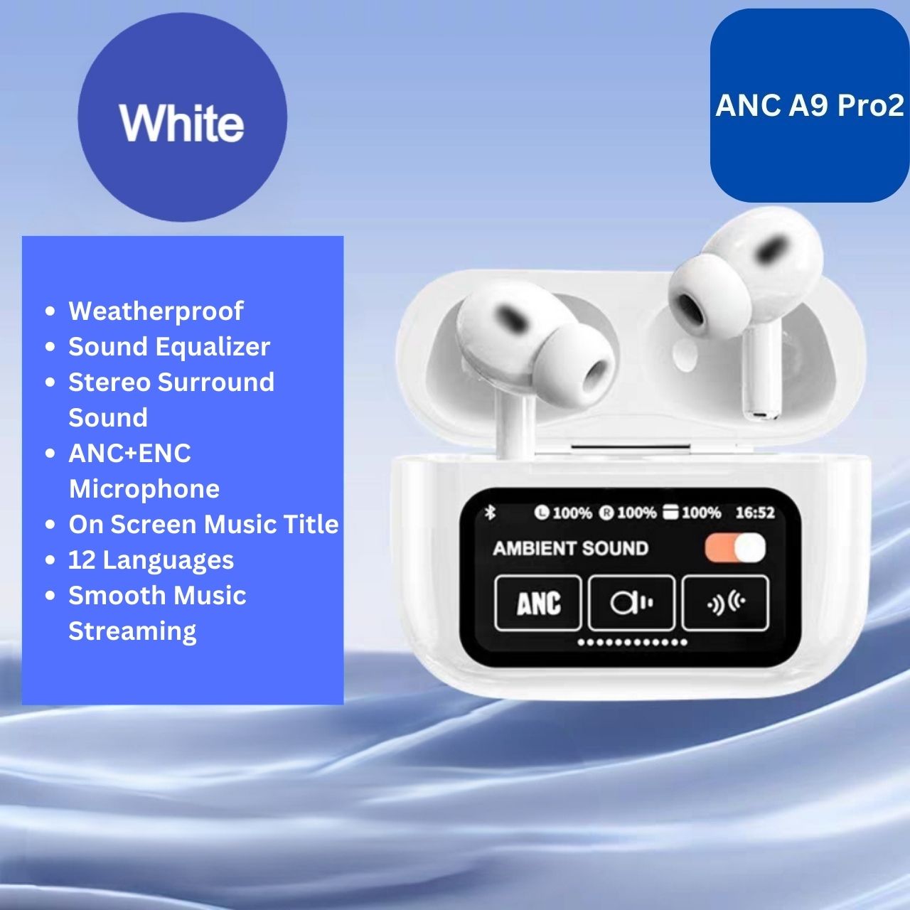 ?Sg Stock?Active Noise Cancellation(ANC) Earphones A9 Pro2 Wireless Bluetooth Earbuds LCD Touch Screen + ENC Microphone
