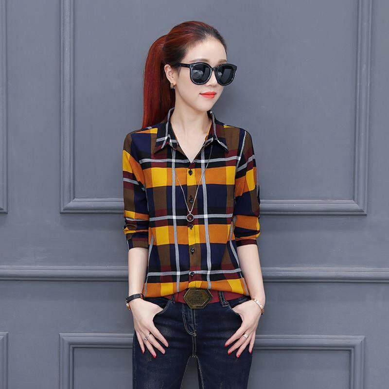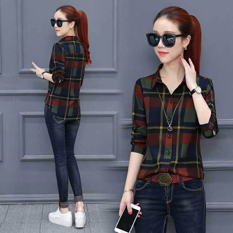 Korean Fashion Plaid Shirt Women New Long Sleeved Blouse