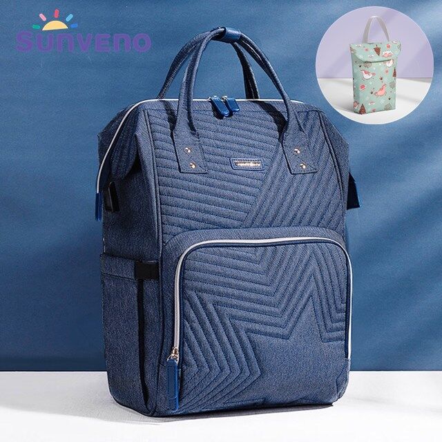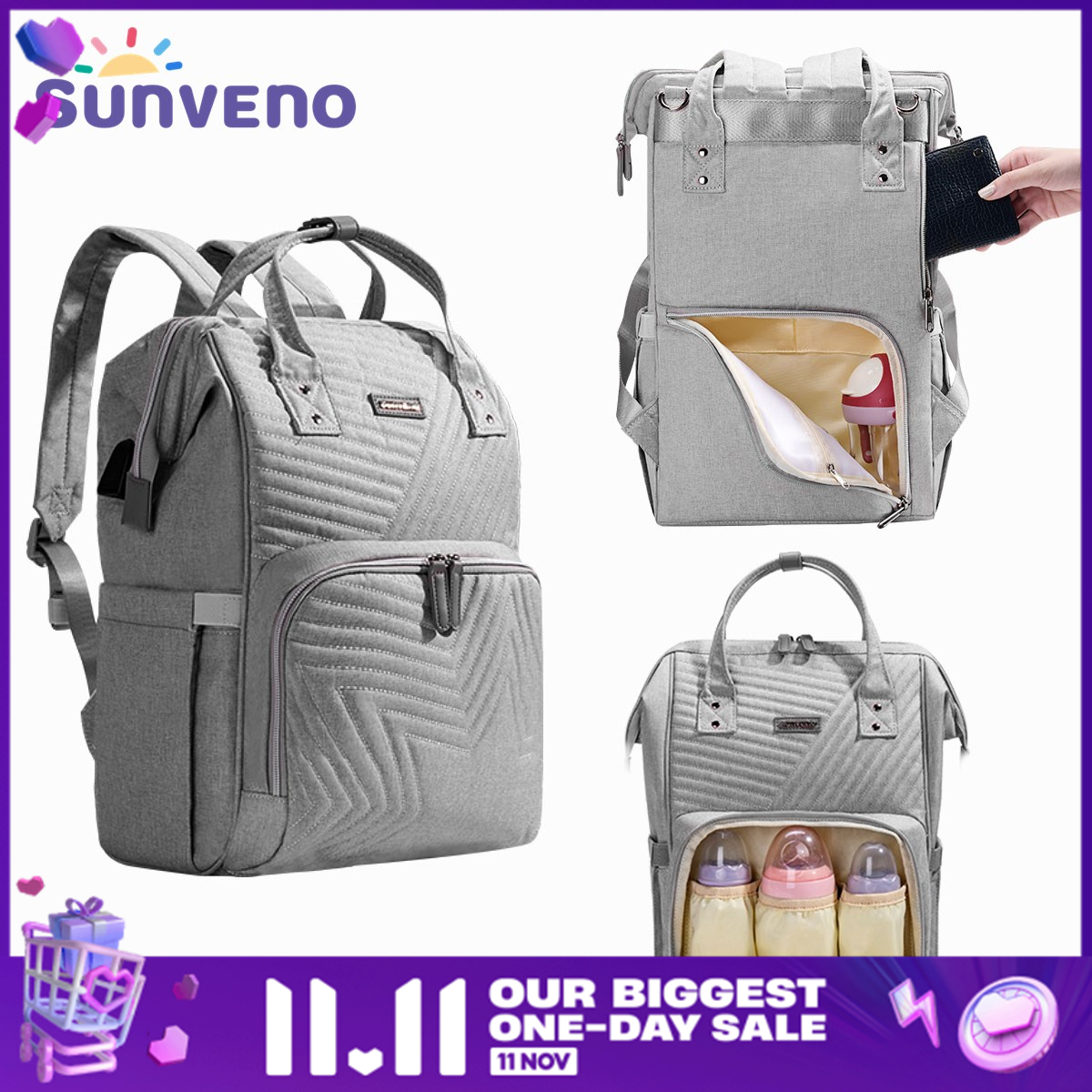 Sunveno Multifunction Diaper Bag Large Capacity Mommy Backpack, Waterproof Travel Nappy Bag, Quilted Fashion Maternity Bag with Front insulated Bottle Pockets