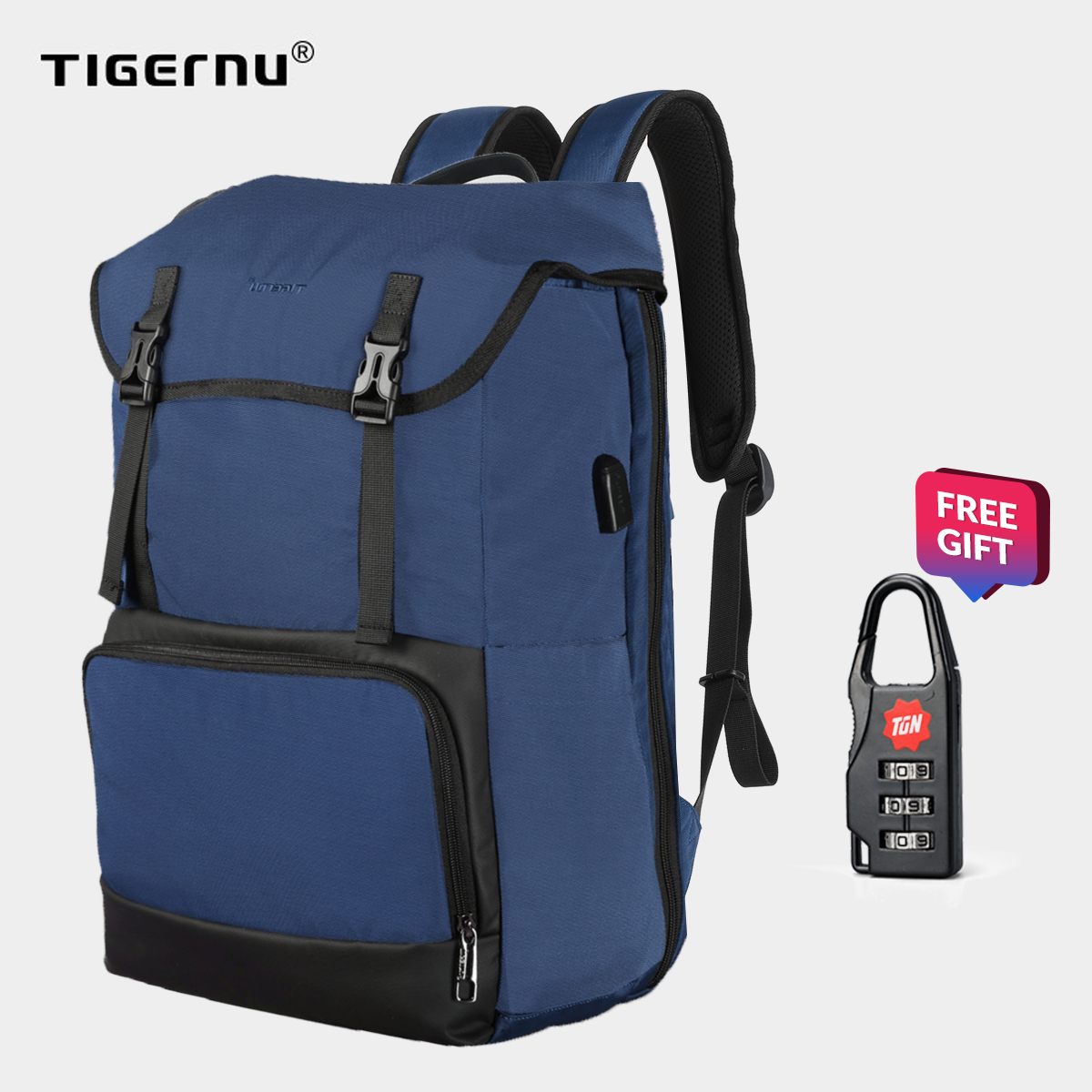Tigernu three colors With Flap water resistant Travel Fashion Men backpack with USB Charging korea women bag School bag T-B3909