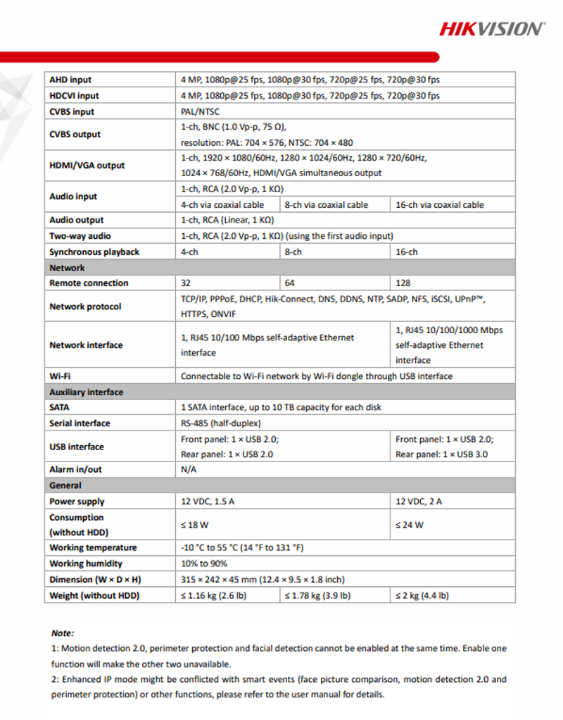 Hikvision Turbo AcuSense 8CH DVR iDS-7208HQHI-M1/S H.265 Pro+/H.265/H.264+/H.264 4MP/2MP/1MP/960H AHD/TVI/CVI/CVBS/IP 8CH Digital Video Recorder App:Hik-Connect