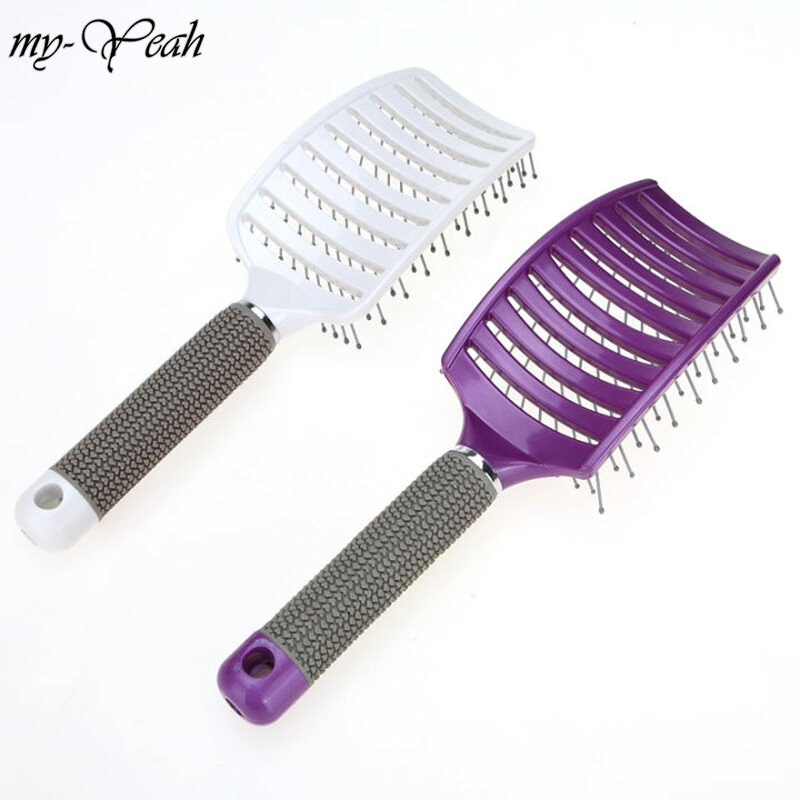 myyeah Hair Salon Heat-resistant Massage Combs Curved Hair Brushes Hairdressing Styling Vent Design Hair Tool- Random color
