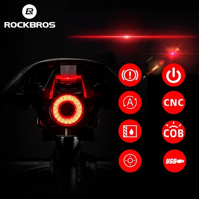 ROCKBROS Bicycle Smart Auto Brake Sensing Light IPx6 Waterproof LED Charging Cycling Taillight Bike Rear Light Accessories