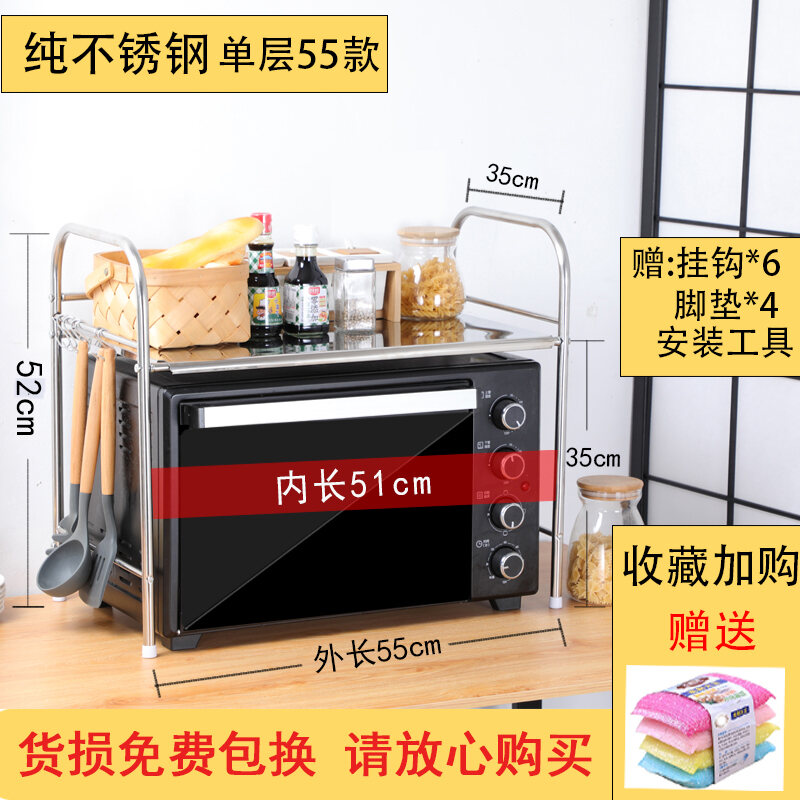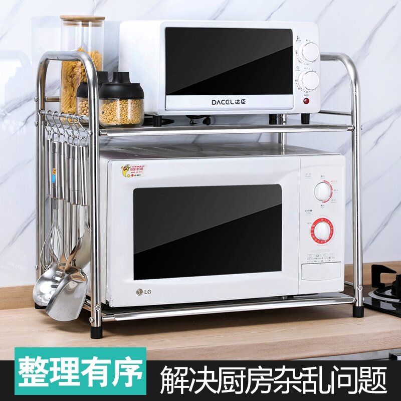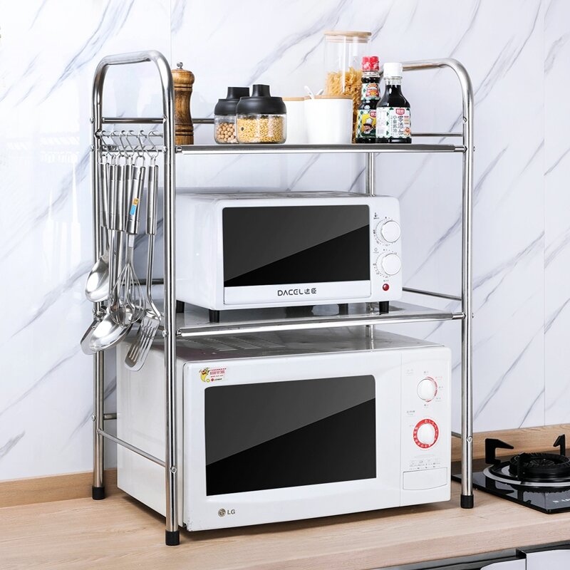 Kitchen Storage Microwave Oven Shelf Stainless Steel Oven Storage Rack Seasoning Rice Cooker Household Table Desktop 2 Layers