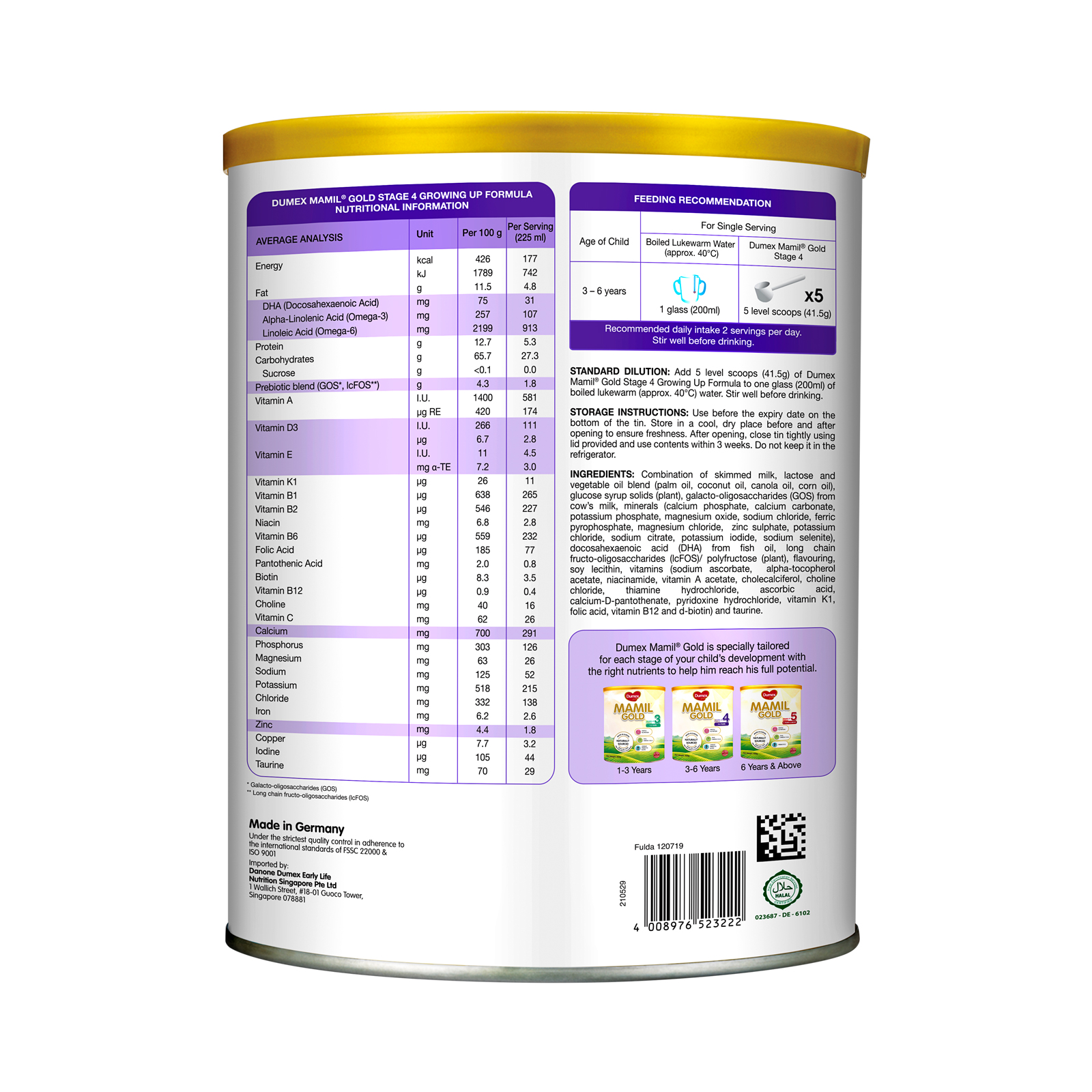 Dumex Mamil Gold Stage 4 Growing Up Kid Milk Formula (1.6kg) x 4 + Free 850g x 2