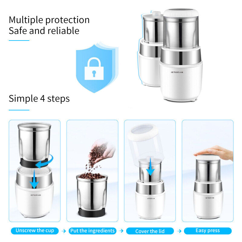 LETGOO Electric Coffee Bean Grinder 2-Leaf Blade Ultra-fine Bean Grinder Household Small Chinese Herbal Medicine Grinder