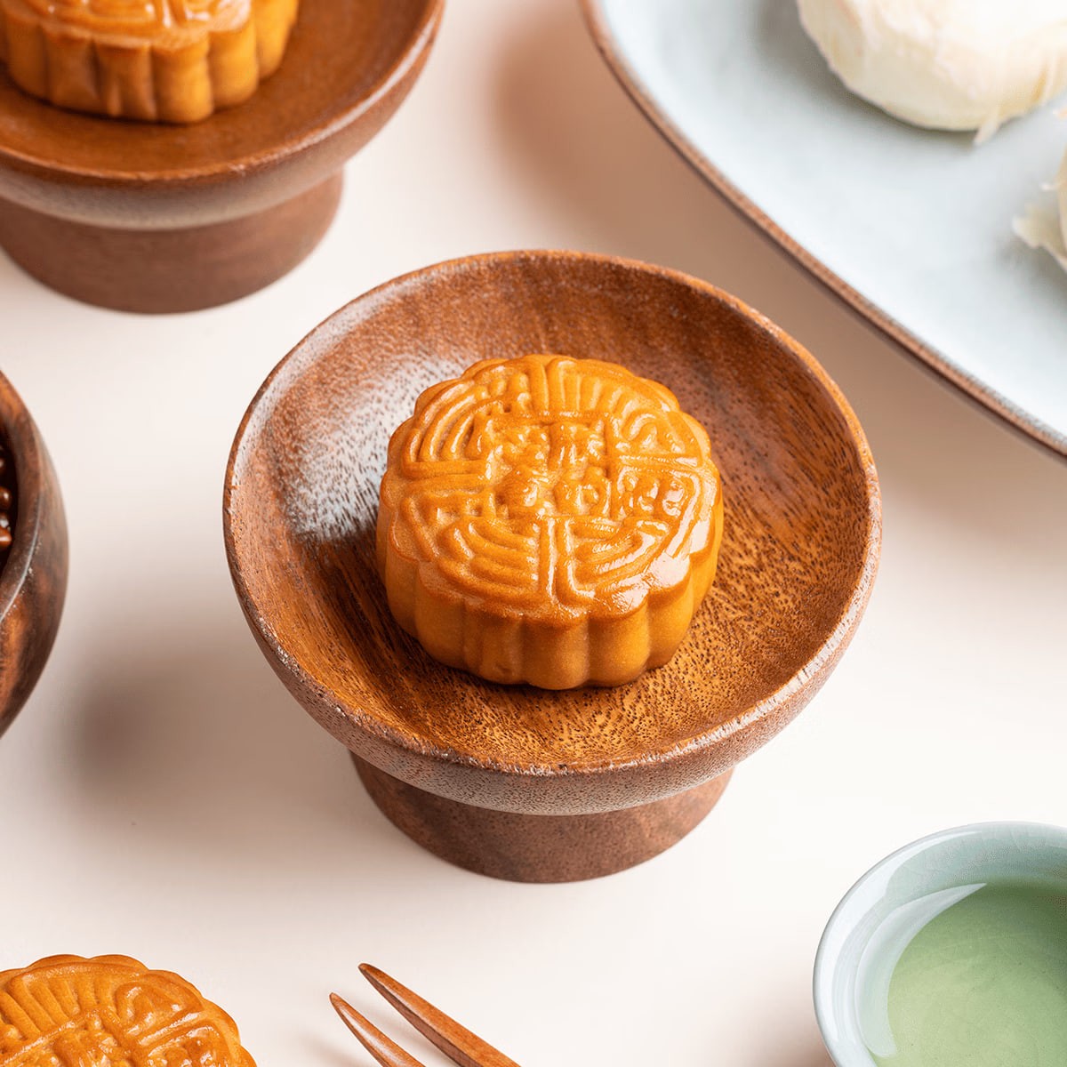 Tea Oil Lotus Seed Paste and Egg Yolk Mooncakes (60g x 2); Lava Custard Mooncakes (50g x 2); Tangerine Peel and Red Bean Paste (60g x 2)