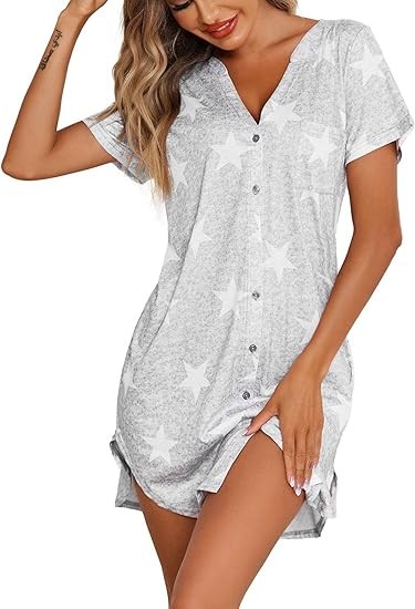 • 【Functional Night Dress】Front button design makes the sleep shirt can be used as a casual pajama dress or maternity nursing nightdress,When you unbutton,you can feed your baby at any time