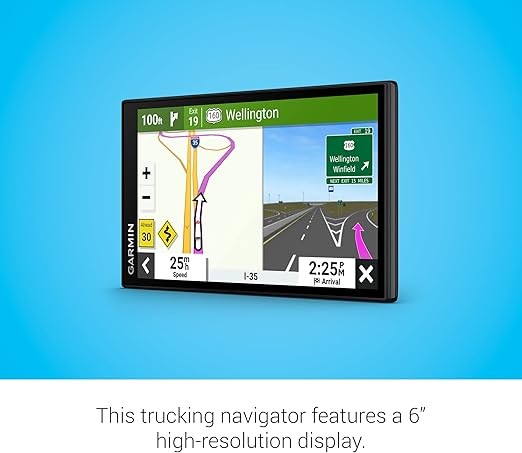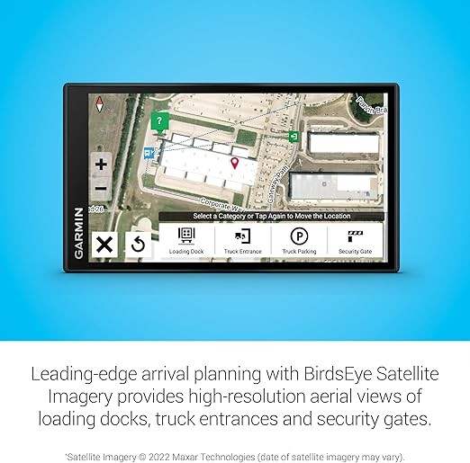Garmin d?zl OTR610, large, easy-to-read 6-in-1 GPS truck navigator, custom truck routing, high-resolution Bird's Eye satellite imagery, truck and trailer service directory