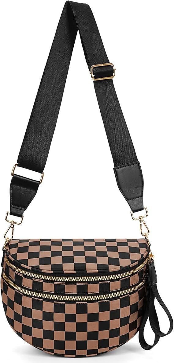 Plaid waist bag, women's crossbody bag, nylon crossbody bag, large waist bag, checkered wallet, oversized casual belt