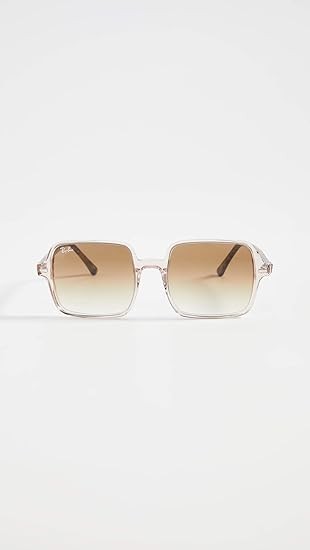 RB1973 square II sunglasses: These Ray-Ban women's sunglasses feature an iconic oversized square Acetate frame in transparent light brown with gradient brown lenses and are prescription ready