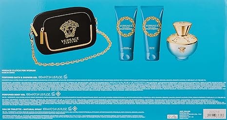 Versace Dylan Turquoise 4pc Gift Set For Woman - 3.4oz Dylan Perfume Edt Sp + 3.4oz Body Gel + 3.4oz Shower Gel + Pouch