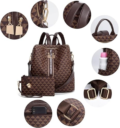 Women's Backpack Wallet PU Leather Travel Satchel Handbag Convertible Design Bag with Wallet, Brown, Travel Backpack
